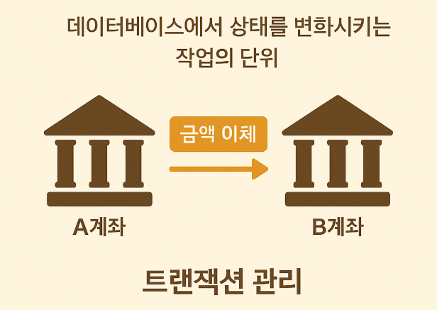 트랜잭션이란데이터베이스의 상태를 변화시키는 하나의 논리적인 작업 단위데이터의 무결성, 일관성을 유지하기 위해 중요한 역할을 한다.트랜잭션의 작업 단위트랜잭션은 여러 작업을 하나의 단위로 묶어 처리한다. 이는 데이터베이스 시스템의 무결성을 유지하기 위해 중요합니다. 예) 은행 계좌 간의 A계좌에서 금액을 차감하고 B계좌에 금액을 추가하는 두 개의 작업이 하나의 트랜잭션으로 처리된다.트랜잭션 관리DBMS에서 제공하는 기능으로, 다름과 같은 명령을 사용합니다.BEGIN TRANSACTION 또는 START TRANSACTION: 트랜잭션의 시작을 알림COMMIT: 트랜잭션 모든 작업이 성공적으로 완료되었음을 알리고, 변경 사항을 영구적으로 반영ROLLBACK: 트랜잭션 중 오류가 발생했을 때, 모든 변경사항을..