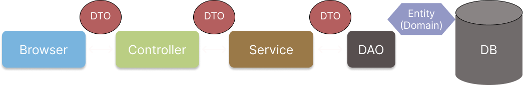 하지만, Service 레이어에 DTO가 들어오지 않아야 여러 종류의 컨트롤러에서 해당 Service를 사용할 수 있다. 그러나 현업에서는 여러 종류의 컨트롤러가 한 서비스를 사용하는 경우보다는, 한 종류의 컨트롤러가 서비스를 사용하기 때문에 엄격히 제안할 필요가 없다. 고 한다.
