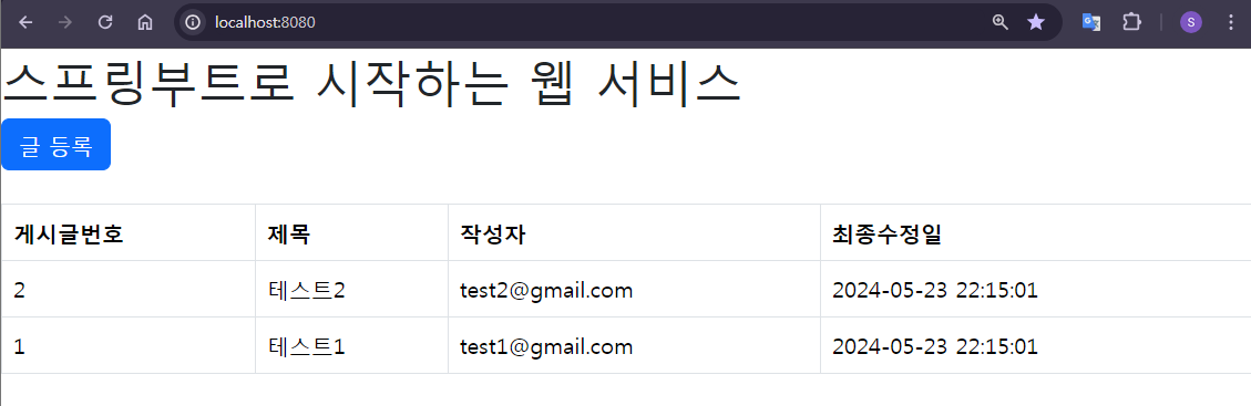 th:each를 사용해서 리스트를 순회하면서 하나씩 꺼내 각각의 필드값을 채워서 테이블에 출력합니다.