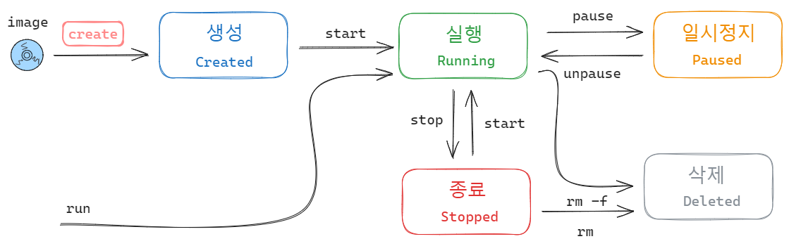 - docker 컨테이너가 메모리만 차지하고 실행되지 않은 상태, 실행 대기